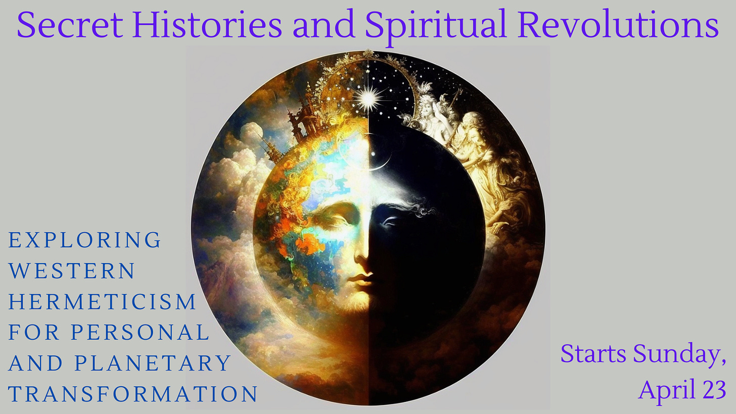 Secret Histories and Spiritual Revolutions starts Sunday, April 23rd, at 1 pm EST (9 am PST, 6 pm CET). Each session will be three hours long, starting with a presentation followed by a discussion.