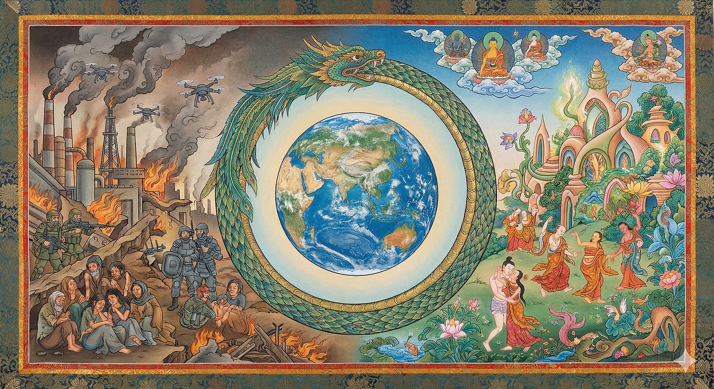 To quote myself: “Humanity, as a whole, constitutes a planetary super-organism, one unified being, in an ongoing, symbiotic relationship with the ecology of the Earth as a whole system.” This realization transforms the crisis from tragedy to opportunity—a purging fire, burning away obsolete structures to make way for our next expression.